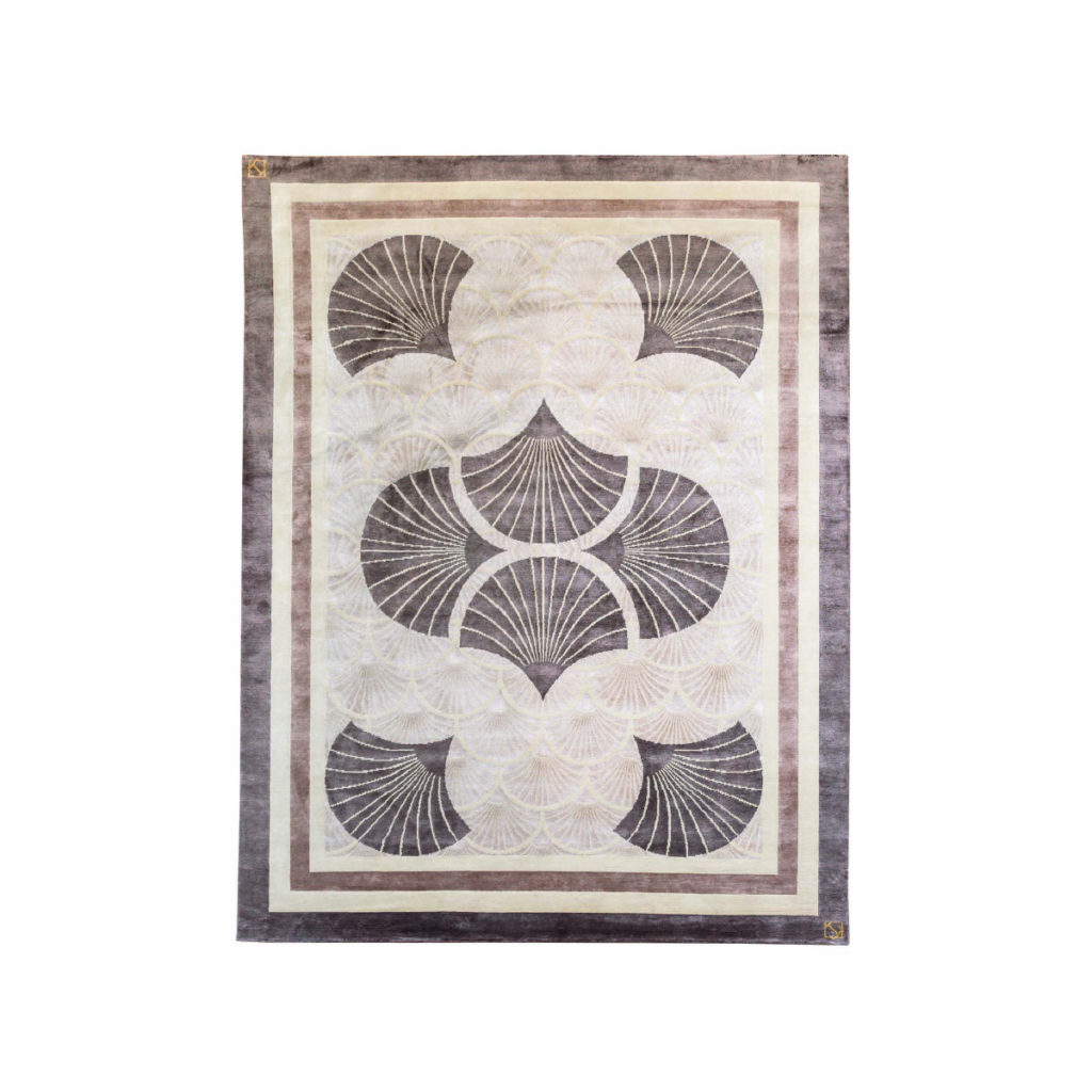 Ковер с рисунком веера из коллекции Noir связан вручную на ткацком станке из 30% шерсти и 70% шелка. Текстура на бежевом фоне повторяет тему вееров, со стилизованными и гармонично повторяемыми формами. Ковры Turri могут быть персонализированы в размере и цвете.