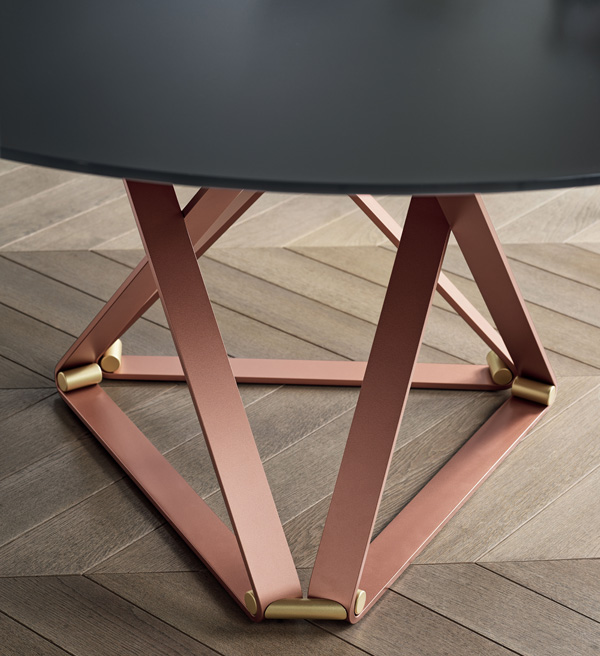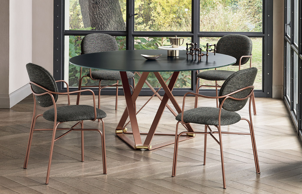 Обеденный стол Delta – воплощение оригинальной дизайнерской мысли, материализованное в металле и дереве. Изящная круглая столешница выгодно подчеркивается сплетением ножек-опор различной толщины. Такая необычная композиция сразу же притягивает взгляд.