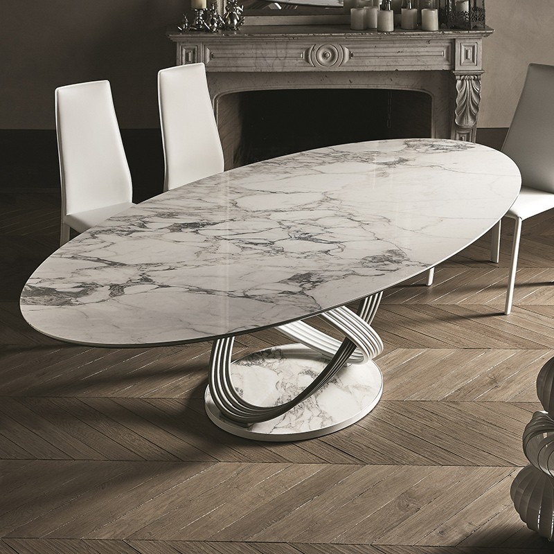 Роскошный овальный стол с плетеными ножками Fusion от Bontempi станет главным акцентом вашего интерьера. Изумительное и оригинальное сочетание цвета и фактуры делает модель уникальной в своем роде. Столешница имеет глянцевый блеск шлифованной древесины. Возможен также вариант из натурального мрамора. Основание стола представлено переплетением лакированных металлических колец контрастного цвета, представляющих собой замысловатую и стильную конструкцию.