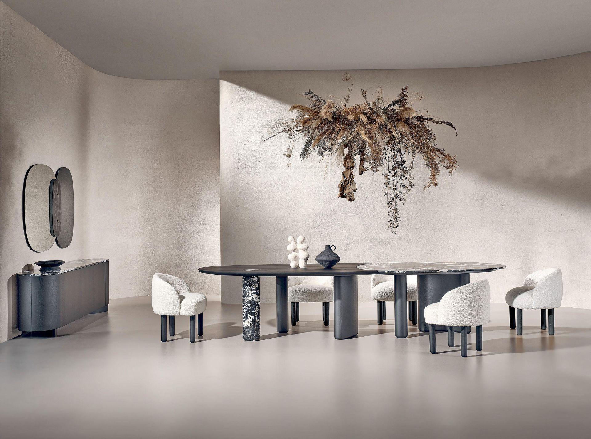 Стол обеденный Lymph Big от фабрики Nature Design создает образ природных элементов. Его аморфные и органические формы вызывают ощущение текучести, добавляя в интерьер нотку естественности. Столешница выполнена из мрамора и дерева. Предлагаемая отделка подчеркивает художественно-декоративный аспект этой модели.