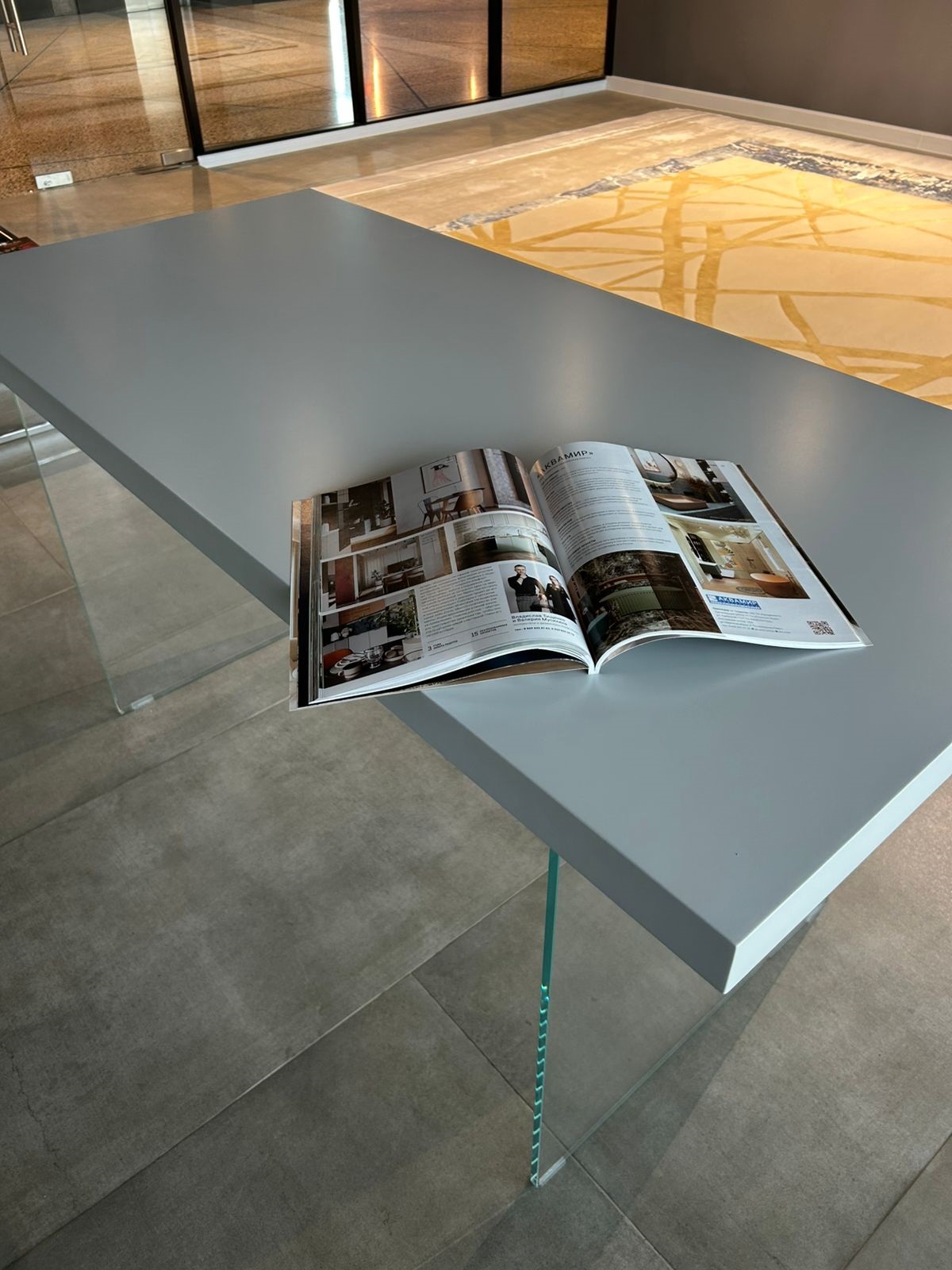 Легкий облик: стол создает магический эффект парения, делая пространство визуально легким и воздушным. Этот завораживающий эффект достигается за счет контраста между столешницей и прозрачной закаленной стеклянной основой.