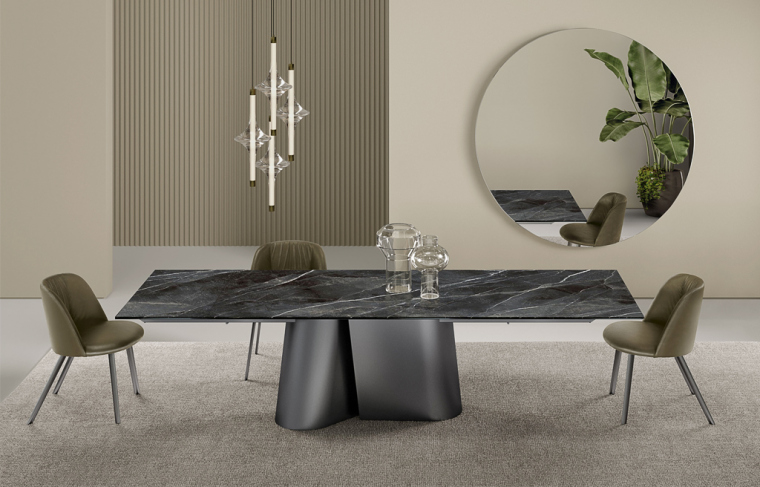 Скульптурный, объемный и символичный стол Kimono от Bontempi Casa воплощает в себе концепцию дизайна, прославляющую простоту. Игра перспективы, света и тени создает интересные эффекты. Два элемента основания, каждый из которых имеет округлую форму, пересекаются, создавая неожиданное и вдохновляющее впечатление. Стол доступен в различных цветовых решениях и вариантах отделки.