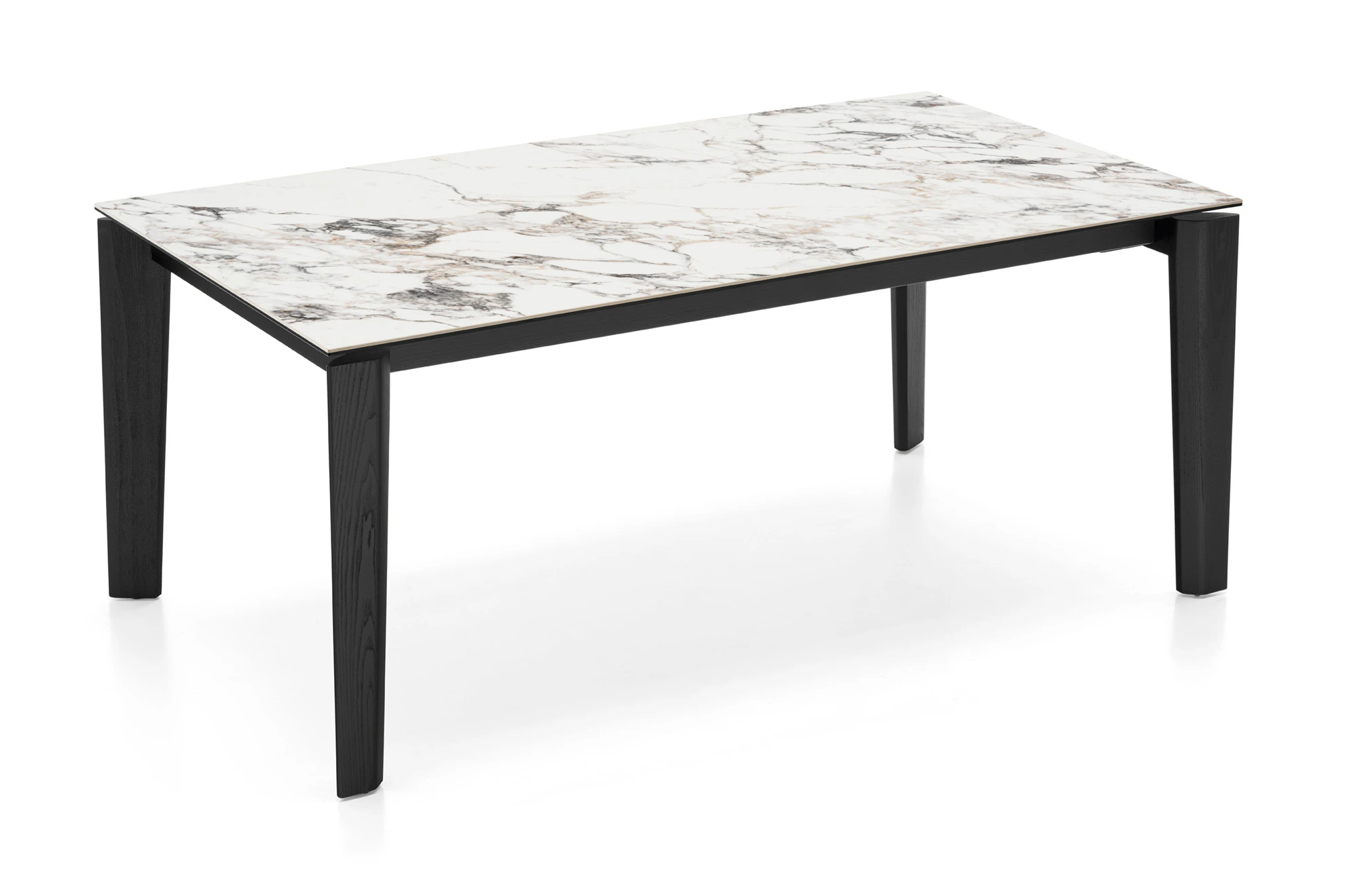 Продуманный механизм раздвижения увеличивает размер керамического стола со 160 до 220 см, при этом ножки остаются по краям столешницы, оставляя максимум свободного пространства для ног. Вставка из итальянской керамики имеет специальные накладки для обеспечения сохранности поверхности и формирует с основной столешницей единый рисунок после раздвижения.